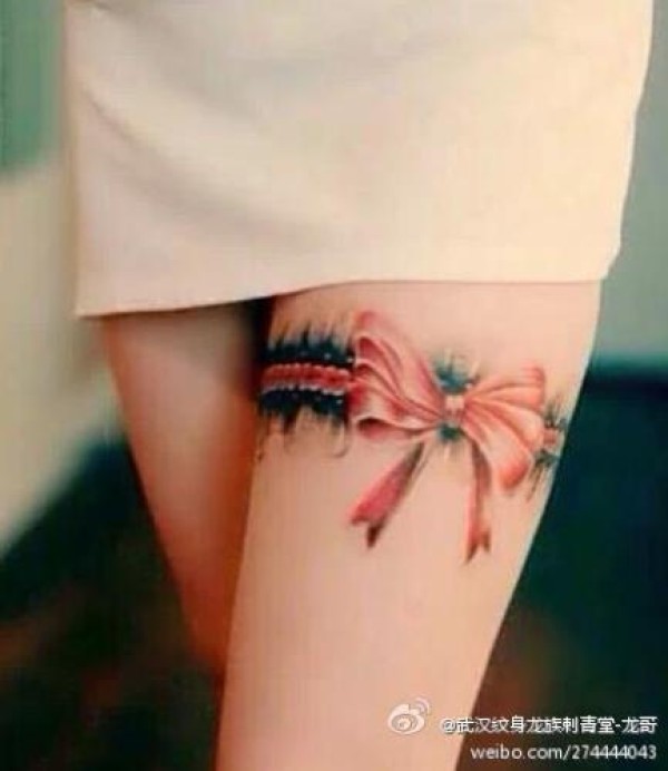 66纹身图库作品女生腿部蝴蝶结纹身_蝴蝶纹身图案大全_纹身图吧