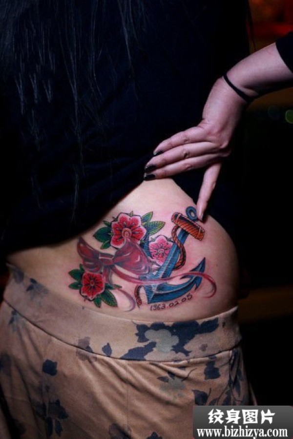 臀腰侧蝴蝶结锚纹身图案图片_蝴蝶纹身图案大全_纹身图吧