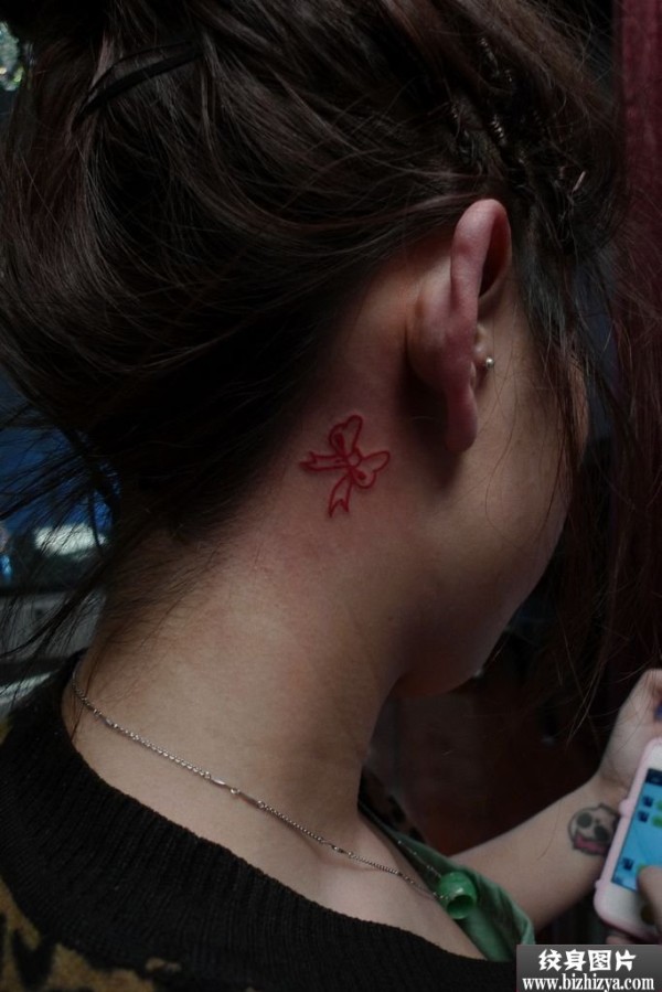 耳后可爱红色蝴蝶结纹身图案图片_蝴蝶纹身图案大全_纹身图吧