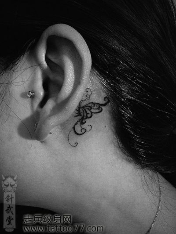 女孩子喜欢的耳部图腾蝴蝶纹身图案_蝴蝶纹身图案大全_纹身图吧