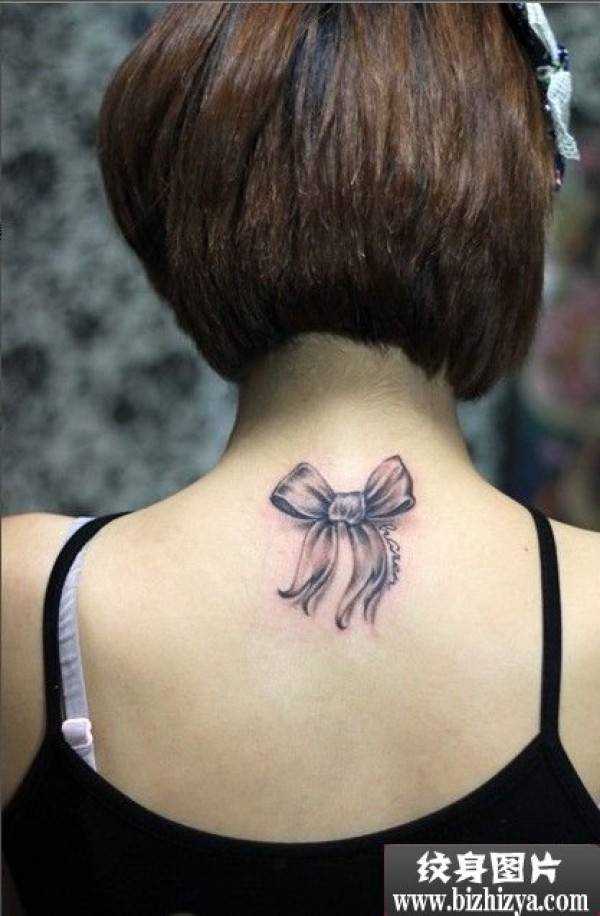 后颈蕾丝蝴蝶结纹身图案图片_蝴蝶纹身图案大全_纹身图吧