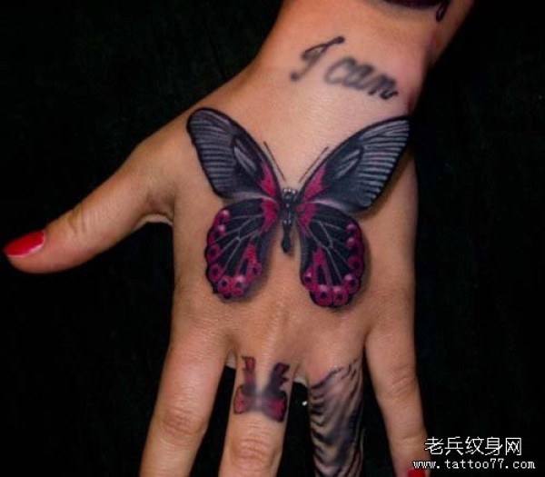 女生手背时尚漂亮的蝴蝶纹身图案_蝴蝶纹身图案大全_纹身图吧