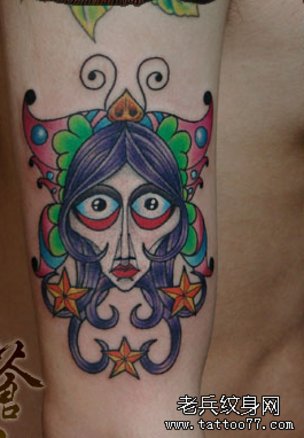 手臂蝴蝶五角星纹身图案_蝴蝶纹身图案大全_纹身图吧
