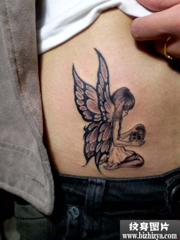 蝴蝶天使腰部时尚纹身图案图片_蝴蝶纹身图案大全_纹身图吧