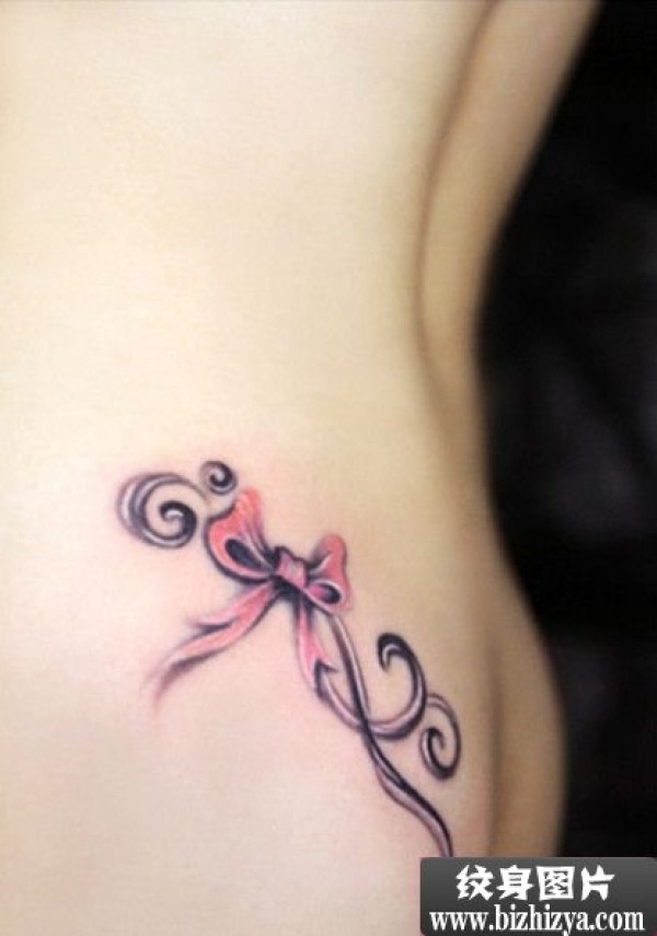 女生臀部个性蝴蝶结纹身图案图片_蝴蝶纹身图案大全_纹身图吧