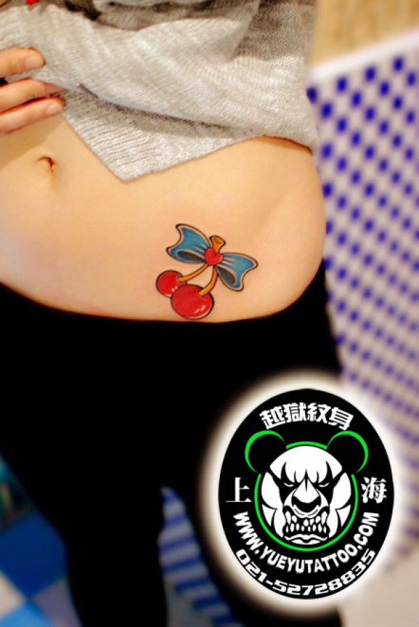 腰部蝴蝶结樱桃纹身图案上海越狱纹身店作品_蝴蝶纹身图案大全_纹身图吧