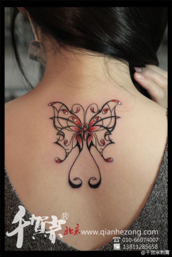 女生后背时尚精美的图腾蝴蝶纹身图案_蝴蝶纹身图案大全_纹身图吧