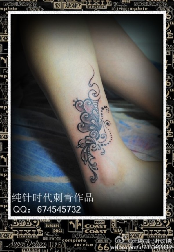 女生腿部时尚潮流的图腾蝴蝶纹身图案_蝴蝶纹身图案大全_纹身图吧