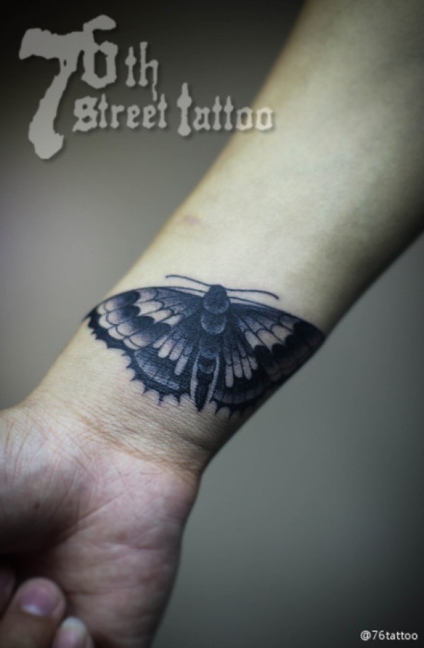 女生手腕唯美潮流的黑灰蝴蝶纹身图案_蝴蝶纹身图案大全_纹身图吧