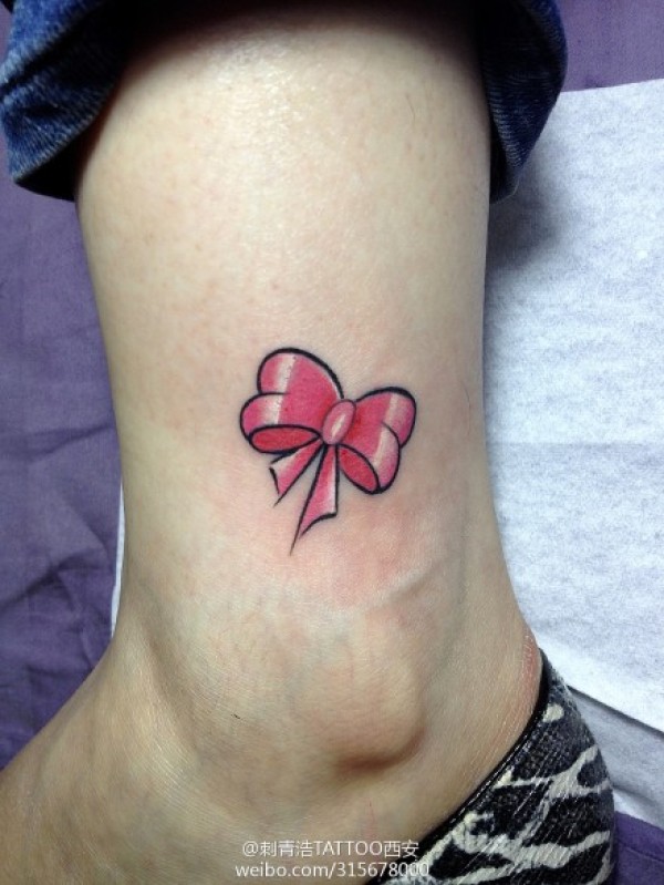 女生脚踝处小巧潮流的蝴蝶结纹身图案_蝴蝶纹身图案大全_纹身图吧