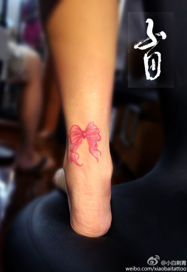 女生腿部精美的蝴蝶结纹身图案_蝴蝶纹身图案大全_纹身图吧