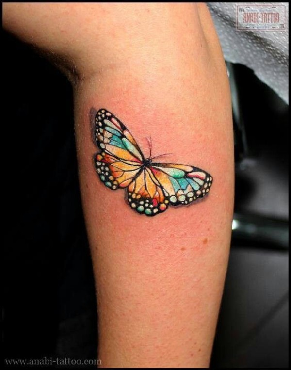 手臂彩色蝴蝶纹身_蝴蝶纹身图案大全_纹身图吧