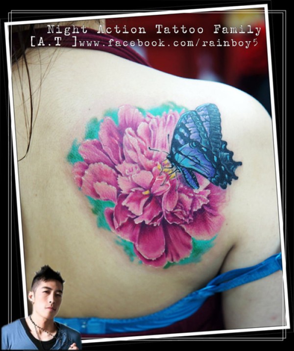 美女肩背漂亮好看的花卉蝴蝶纹身图案_蝴蝶纹身图案大全_纹身图吧