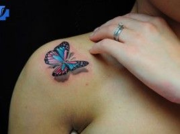 推荐一款时尚经典的肩膀蝴蝶纹身图案_蝴蝶纹身图案大全_纹身图吧
