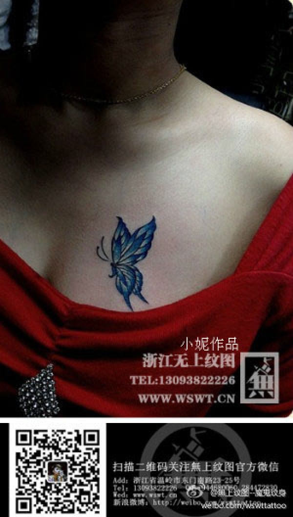 女生胸前漂亮精美的蝴蝶纹身图案_蝴蝶纹身图案大全_纹身图吧