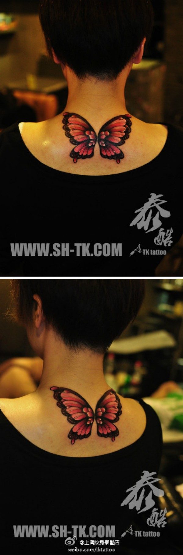 女生后脖子潮流好看的蝴蝶翅膀纹身图案_蝴蝶纹身图案大全_纹身图吧
