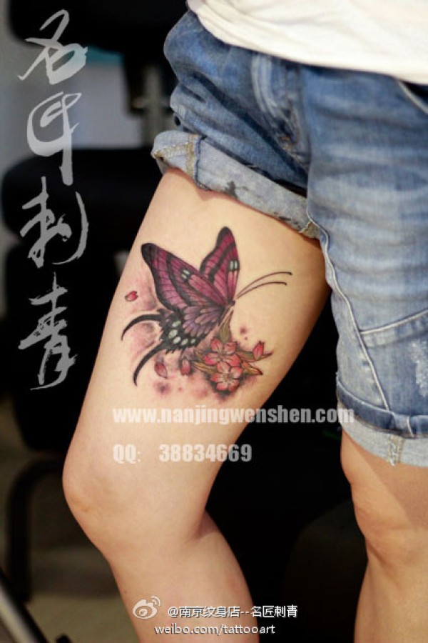 美女大腿内侧内侧时尚精美的蝴蝶纹身图案_蝴蝶纹身图案大全_纹身图吧