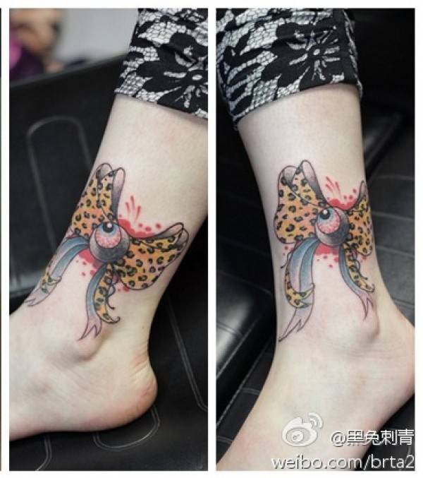 女生腿部经典的豹纹蝴蝶结纹身图案_蝴蝶纹身图案大全_纹身图吧