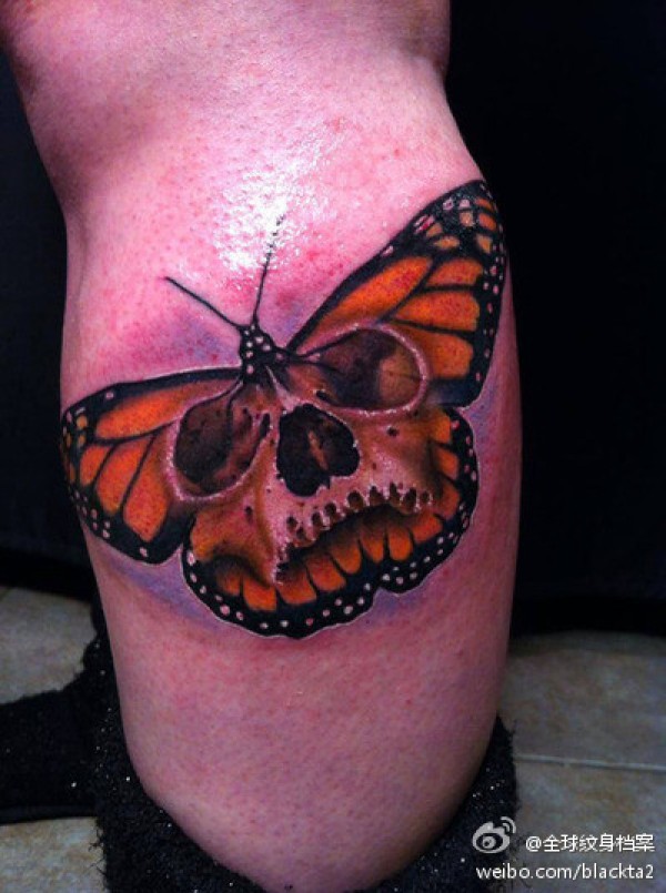 一款时尚很酷的蝴蝶与骷髅纹身图案_蝴蝶纹身图案大全_纹身图吧