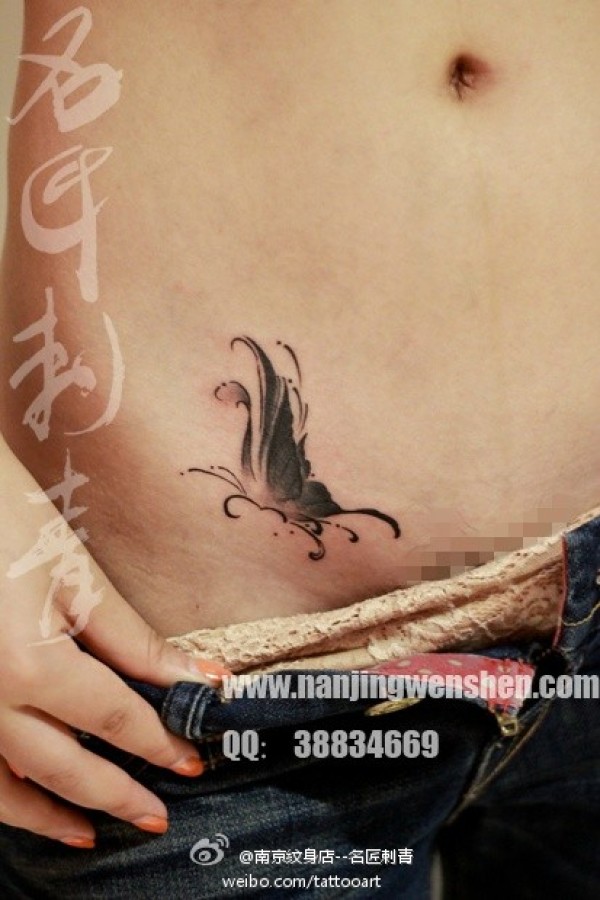 美女腹部唯美潮流的小蝴蝶纹身图案_蝴蝶纹身图案大全_纹身图吧