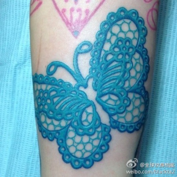 女生腿部时尚潮流的蕾丝蝴蝶纹身图案_蝴蝶纹身图案大全_纹身图吧