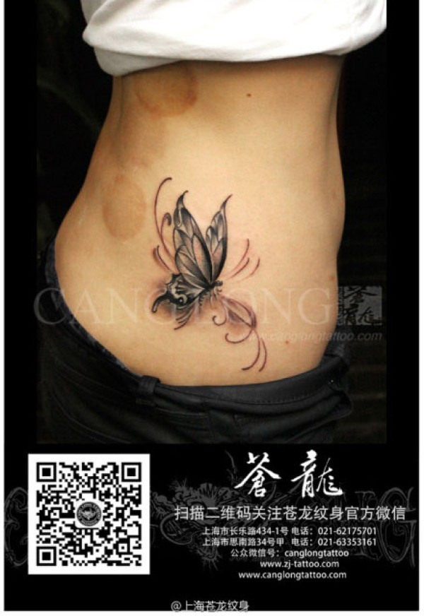 腰部彩色蝴蝶纹身_蝴蝶纹身图案大全_纹身图吧