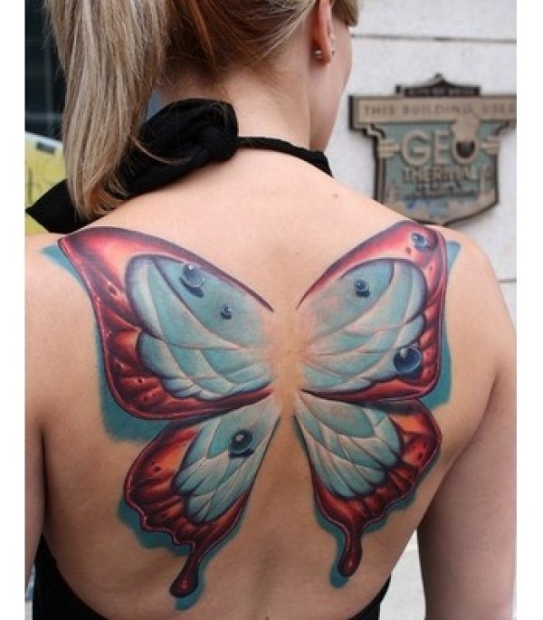 分享一款美女背部蝴蝶纹身图案_蝴蝶纹身图案大全_纹身图吧