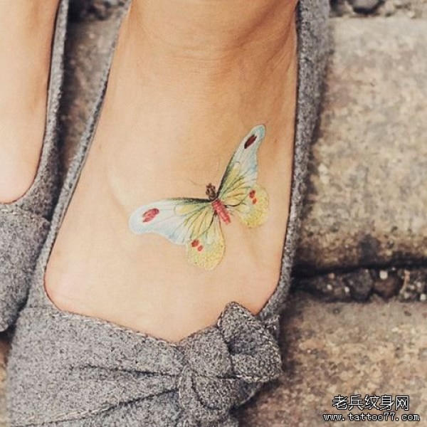 分享一款脚背蝴蝶纹身图案_蝴蝶纹身图案大全_纹身图吧