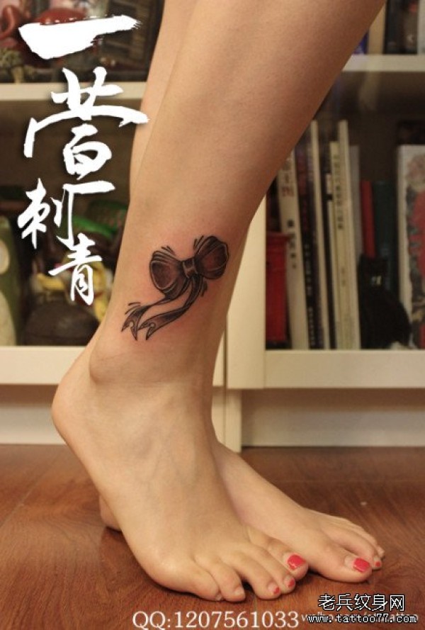 女生腿部小巧潮流的蝴蝶结纹身图案_蝴蝶纹身图案大全_纹身图吧