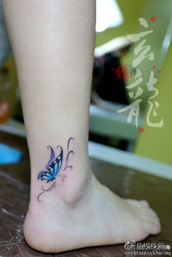 女生脚踝处小的彩色蝴蝶纹身图案_蝴蝶纹身图案大全_纹身图吧