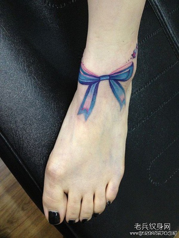 女生脚部小巧时尚的一款蝴蝶结纹身图案_蝴蝶纹身图案大全_纹身图吧