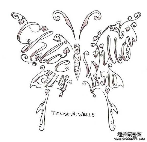 一款个性的字母蝴蝶纹身图案_蝴蝶纹身图案大全_纹身图吧