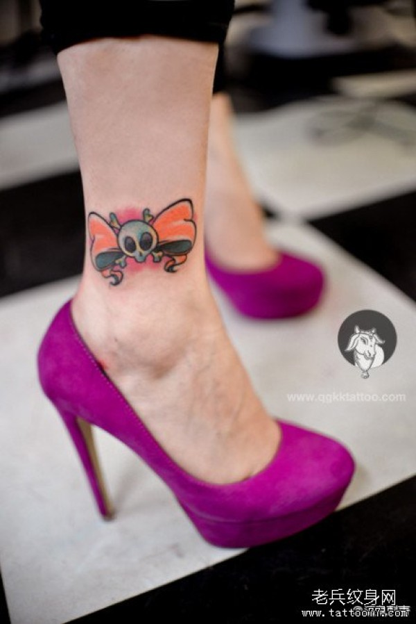 女生小腿处小巧精美的蝴蝶结纹身图案_蝴蝶纹身图案大全_纹身图吧
