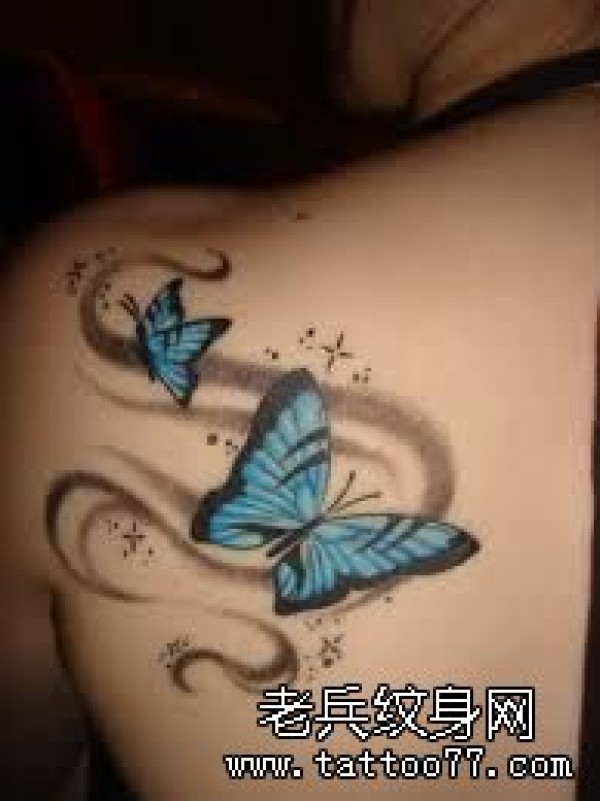 推荐一款蓝色蝴蝶纹身图案_蝴蝶纹身图案大全_纹身图吧