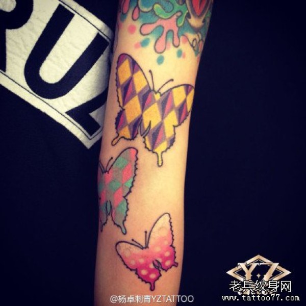 手臂彩色蝴蝶纹身_蝴蝶纹身图案大全_纹身图吧