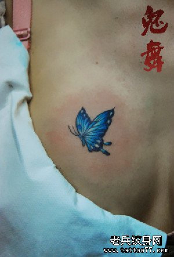 女生胸前流行的彩色蝴蝶纹身图案_蝴蝶纹身图案大全_纹身图吧