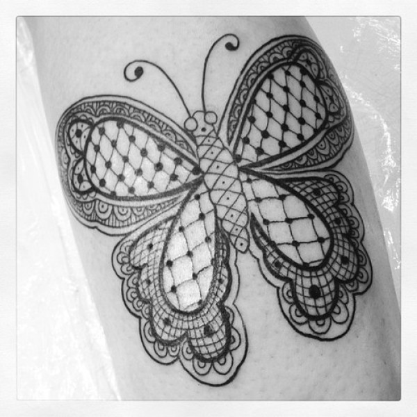 一款唯美潮流的蕾丝蝴蝶纹身图案_蝴蝶纹身图案大全_纹身图吧