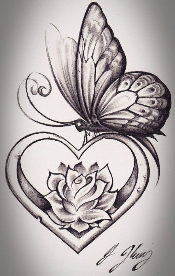 推荐一款蝴蝶爱心纹身图案_蝴蝶纹身图案大全_纹身图吧