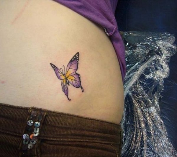腰部彩色蝴蝶纹身_蝴蝶纹身图案大全_纹身图吧