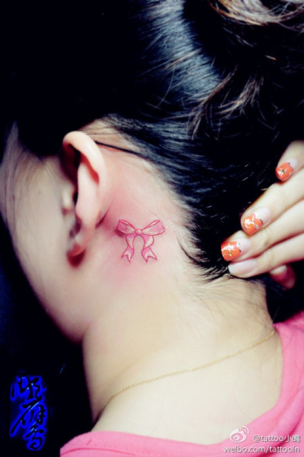 女生耳部小巧潮流的蝴蝶结纹身图案_蝴蝶纹身图案大全_纹身图吧
