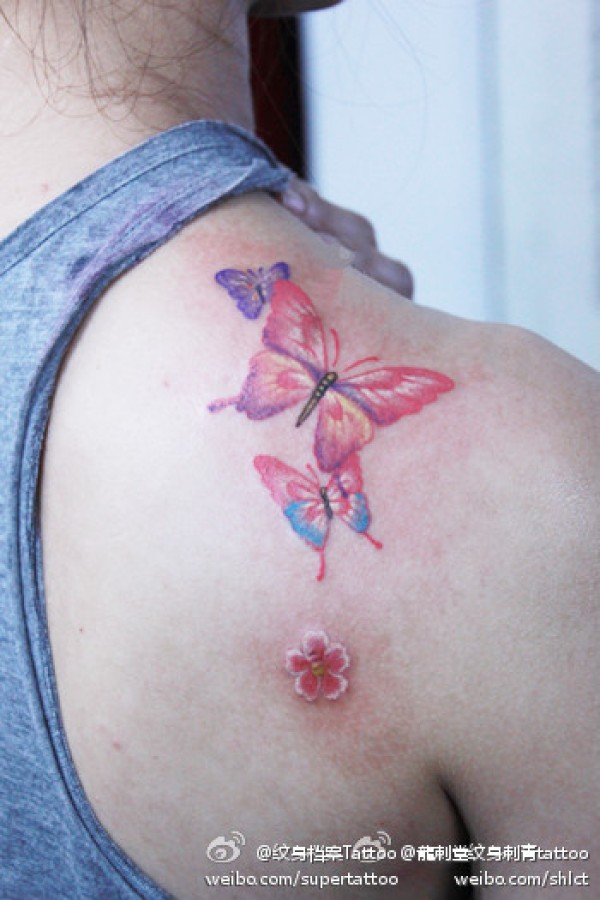 女生肩背漂亮潮流的蝴蝶纹身图案_蝴蝶纹身图案大全_纹身图吧