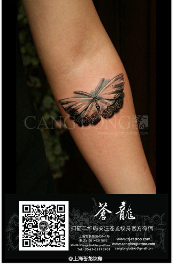 女生手臂漂亮好看的蕾丝蝴蝶纹身图案_蝴蝶纹身图案大全_纹身图吧