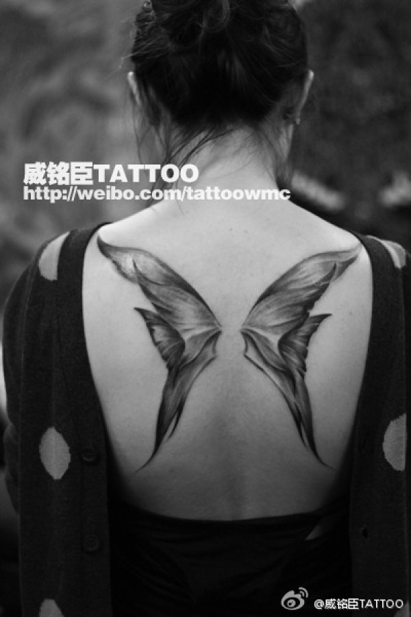 女生后背漂亮潮流的蝴蝶翅膀纹身图案_蝴蝶纹身图案大全_纹身图吧