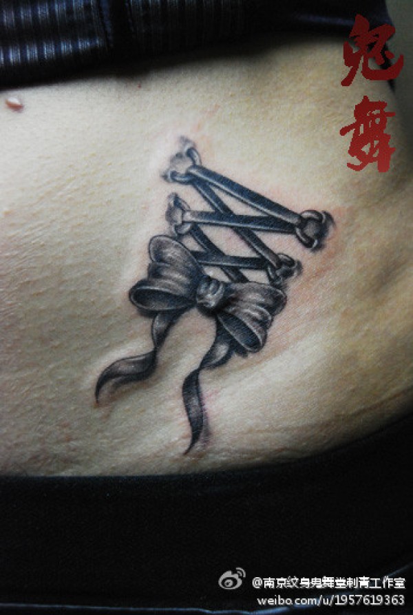 美女腹部时尚漂亮的蝴蝶结纹身图案_蝴蝶纹身图案大全_纹身图吧