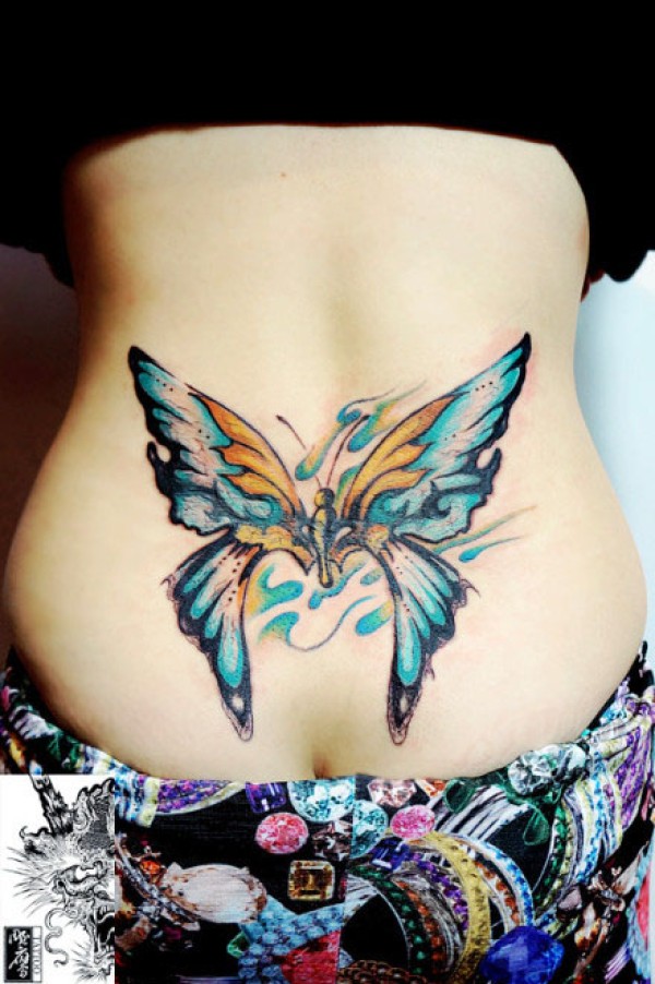 腰部彩色蝴蝶纹身_蝴蝶纹身图案大全_纹身图吧