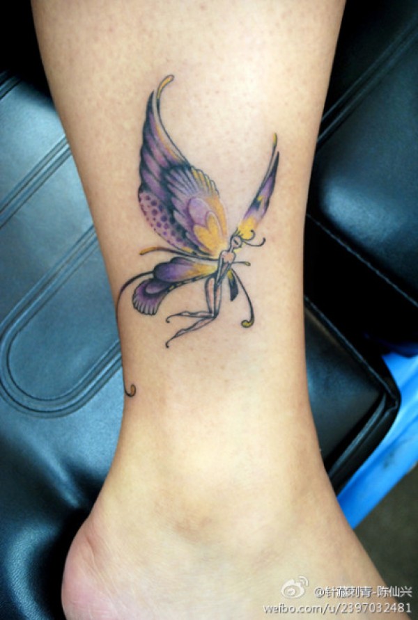 美女腿部小巧的蝴蝶精灵纹身图案_蝴蝶纹身图案大全_纹身图吧