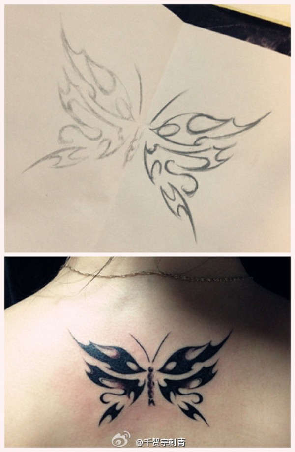 女生后背时尚经典的图腾蝴蝶纹身图案_蝴蝶纹身图案大全_纹身图吧