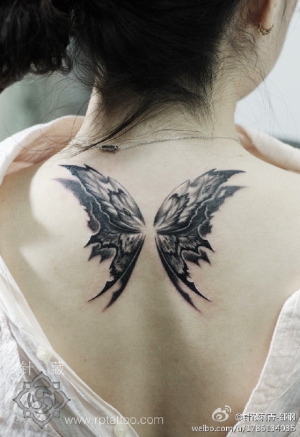 时尚精美的女生背部蝴蝶翅膀纹身图案_蝴蝶纹身图案大全_纹身图吧