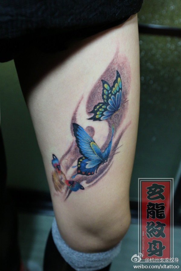 腿部蝴蝶纹身_蝴蝶纹身图案大全_纹身图吧