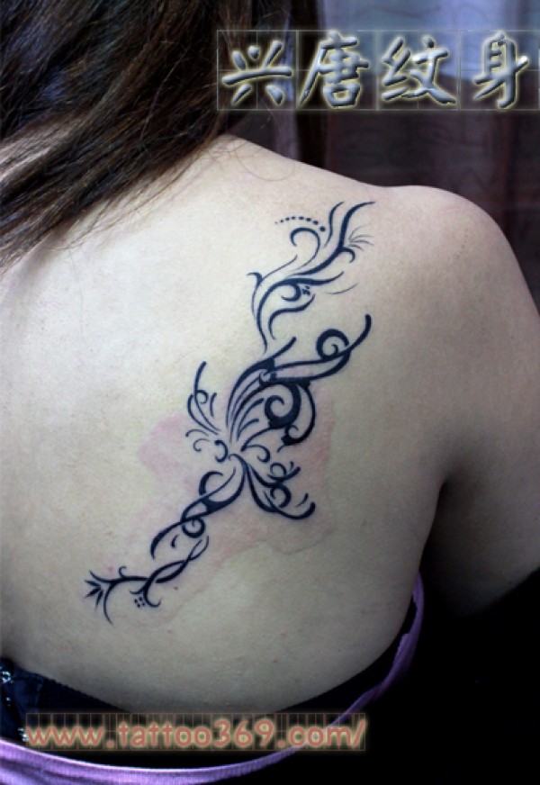 女生背部时尚流行的图腾蝴蝶纹身图案_蝴蝶纹身图案大全_纹身图吧